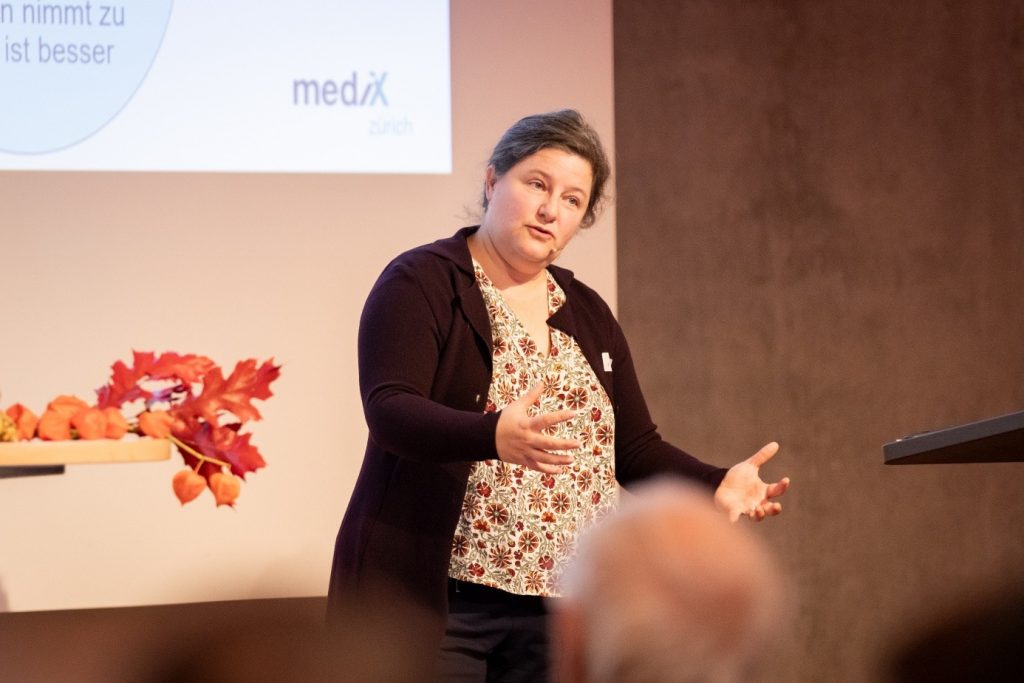 Im zweiten Referat präsentierte Corinne Chmiel, Leitende Ärztin beim Ärztenetz mediX, ihren Alltag in der hausärztlichen Praxis. Sie ist oft mit Patientinnen und Patienten mit sehr konkreten Ansprüchen und Erwartungen konfrontiert. Dafür sieht sie drei Gründe: Zum einen eine Anspruchshaltung, die aufgrund der hohen Prämien entsteht und zu einem «Kioskverhalten» führt. Zum anderen sind zu viele, oft falsche, Informationen im Umlauf und insbesondere bei den Jüngeren auch zunehmende Ängste. Schliesslich gibt es falsche Erwartungen an die Diagnostik und dem Motto «Mehr ist mehr». Lösungsansätze sieht Corinne Chmiel vor allem in echten Managed-Care Modellen, die durch eine verbesserte Arzt-Patientenbeziehung, bessere Informationen für die Patienten und vernünftige Guidelines für Leistungserbringer an beiden Seiten ansetzen.