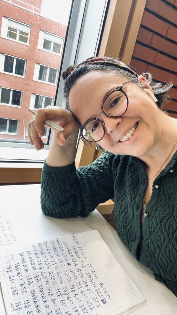 Sprachen sind für Claudia bis heute Ausgleich und Inspiration zugleich. Neben Französisch, Italienisch und Englisch eignete sie sich ab dem 4. Semester zusätzlich Koreanisch an, das sie im Tandem mit zwei Koreanerinnen – eine in Seoul und eine in Basel – vertieft. Demnächst fliegt sie zum ersten Mal nach Korea und ist gespannt, wie gut sie sich im Alltag verständigen wird.