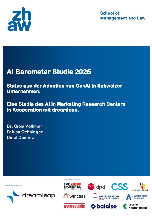 Generative künstliche Intelligenz (GenAI) verändert bereits heute, wie in Unternehmen gearbeitet, kommuniziert und entschieden wird. Doch wie weit ist die Technologie tatsächlich in der Schweizer Unternehmenspraxis angekommen? Wie nutzen Organisationen GenAI – und wie gut sind sie strukturell darauf vorbereitet? Die AI Barometer Studie 2025, herausgegeben vom AI in Marketing Research Center am Institut für Marketing Management der ZHAW School of Management and Law, liefert erstmals fundierte Antworten auf diese Fragen – faktenbasiert, praxisnah und differenziert.