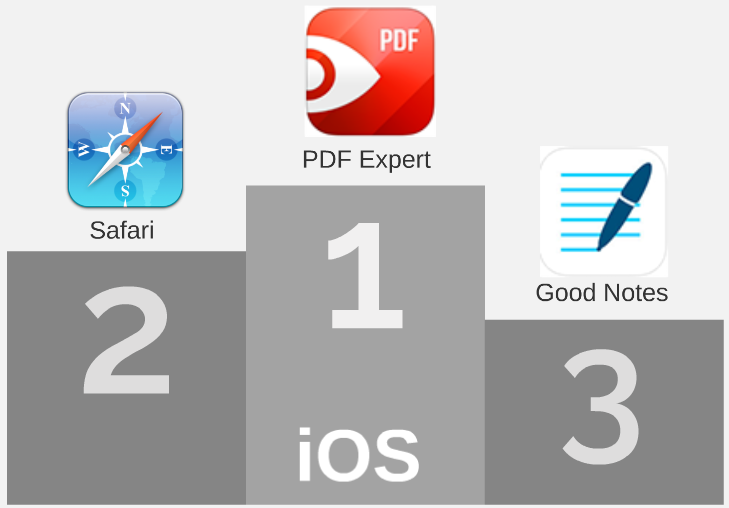 Bei den iPad-NutzerInnen ist die App PDF Expert in allen Lernphasen vom Unterricht und im Labor bis hin zum Selbststudium und der Prüfungsvorbereitung die meistverwendete App. Einige nutzen auch den etwas günstigeren GoodReader, MobiFolders oder den kostenlosen Adobe Reader.