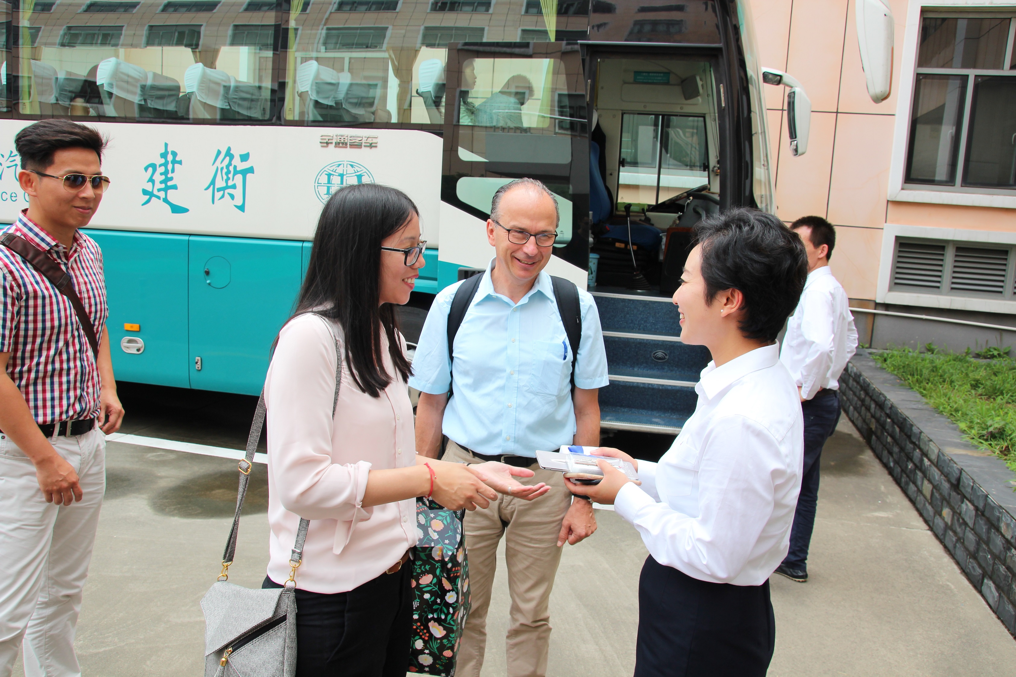 The Yangshan Deepwater Port Project commenced in June 2005 and Phase I Terminal put into operation already at the end of 2005. Yangshan Phase I, Phase II, and Phase III Terminal were fully completed in 11 years. For the time being, the three terminals totally have a 5.6 kilometers quay length and equip 16 berths. To further consolidate and improve the status of Yangshan Phase IV Terminal began construction in 2014. Planned is a fully automatic terminal with five 50 thousand tons container vessel berths, two 70 thousand tons berth, one working vessel berth and other facilities. It will be put into operation at the end of 2017. In the near future, there are almost no people planned in the dock site of Phase IV Terminal as all the operation will be intelligent and automatic. The group was astonished by the size, the efficiency and the huge numbers of containers. Finally, our bus driver was able to drive us directly through the port between narrow corridors and in the midst of thousands of containers – an impressive sight indeed.