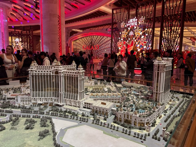Later in the afternoon, we took the bus to Galaxy Entertainment Casino, where we were given a tour of the massive complex. The scale of this busy place was honestly mind-blowing, a massive shopping mall, luxury hotels and shops, stunning interiors, and an atmosphere that felt completely different from the streets we had just walked through. A quick detour through an exhibition of art icon Zhu Bingren, who is famous for his incredible copper-carving skills, complemented our visit.