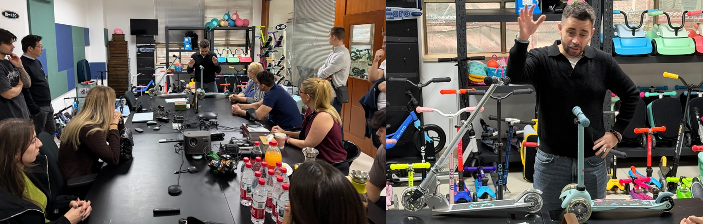 We walked through many different manufacturing processes and saw different types of logo application. Some were more old-school methods, like water-immersed sticker application, but there were also newer ones, such as UV light printing. We then arrived at a classical assembly line, where all the parts that have been manufactured are put together into one product. Before heading off for lunch, we even saw the testing facility where Micro makes sure that all products meet their high standards. This is especially important because they are currently participating in collaborations such as Porsche and others.