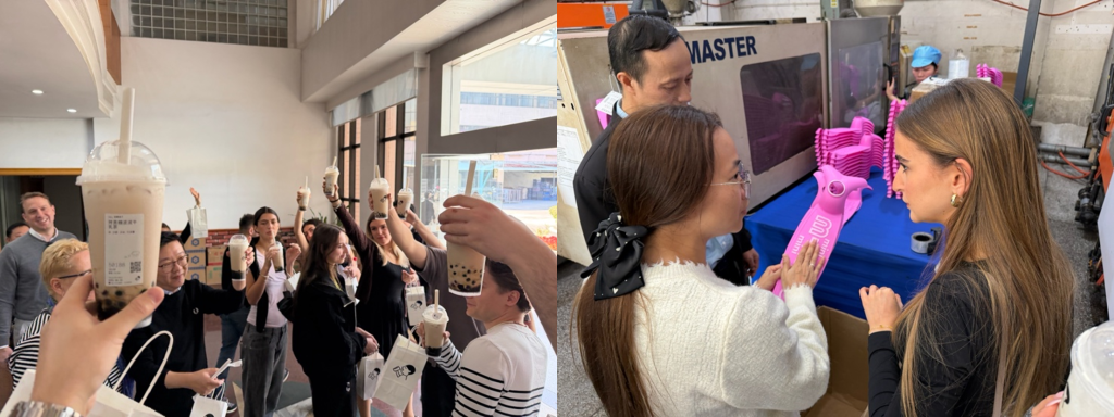 After getting up to date with all the information regarding the company and its products, it was time to learn how they are made as well. So we took a quick bus tour to the factory. We were warmly welcomed in true Chinese hospitality fashion with some bubble tea.