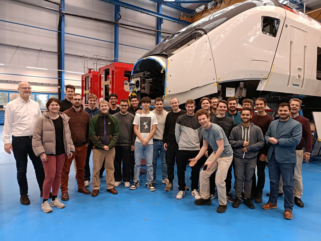 Eingebettet war das gegenseitige Kennenlernen von Studierenden und leitenden Stadler-Mitarbeitern in ein attraktives Fachprogramm. Neben einer speziell zugeschnittenen Werksbesichtigung gaben die Stadler-Ingenieure Christian Fechs und Thomas Legler detaillierte Einblicke in die Themenfelder „Automatisierung des Bahnbetriebs“ und „RAMS (Zuverlässigkeit, Verfügbarkeit, Instandhaltbarkeit, Sicherheit)“. Ein besonderer Dank gilt Borhan Bas für die gelungene Organisation des Anlasses.